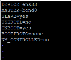 2: ens33: <BROADCAST,MULTICAST,SLAVE,UP,LOWER_UP> mtu 1500 qdisc pfifo_fast master bond0 state UP group default qlen 1000