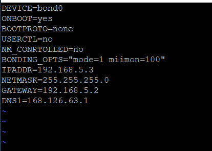 위와 같이 vi를 통해 ens33, ens34, bond0를 설정해주면 된다.