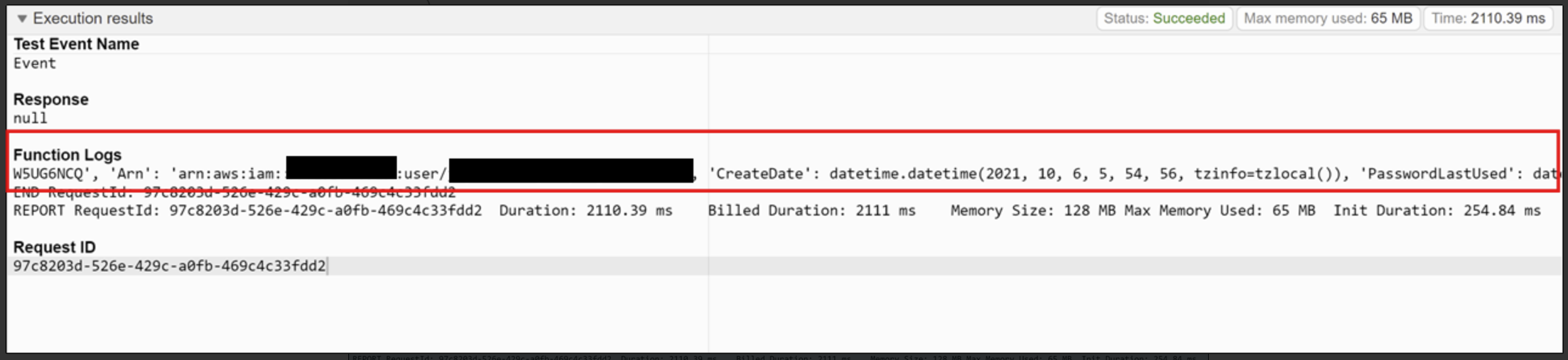 assume_role로 A 계정의 Role을 사용하여 A 계정이 권한을 일시적으로 부여받을 수 있는 ACCESS_KEY, SECRET_KEY, SESSION_TOKEN을 받게 되며, 이를 iam client에서 인증값으로 사용한다. 그 후에는 list_users() 메서드를 이용해 response를 받게 된다.