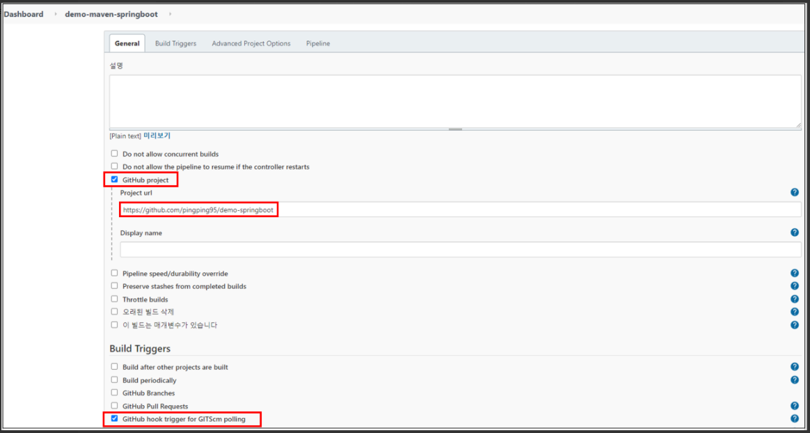 ⇒ Git에서 Hook Trigger을 받을 수 있도록 설정