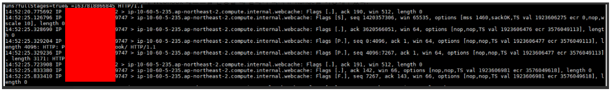 Jenkins 서버 내에서 tcpdump로 확인할 때 정상적으로 Webhook 테스트가 수행되는 모습