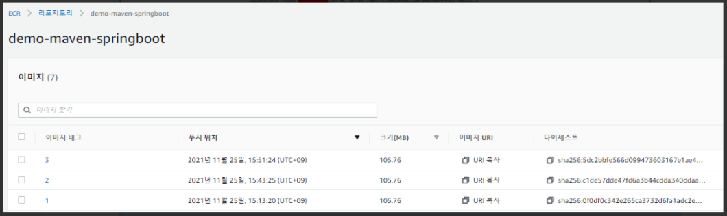 ECR에 Docker Image가 Push 된 것을 확인