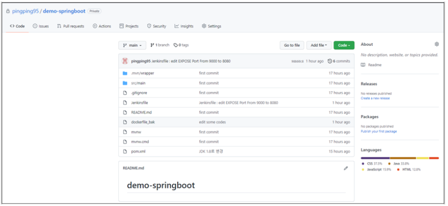 1. Git을 세팅한다. 해당 Git에서 SpringBoot 소스 코드 및 Jenkinsfile을 참조하게 된다.