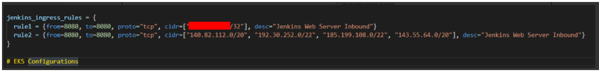 * Terraform 소스 코드 중 일부 (Security Group을 추가)