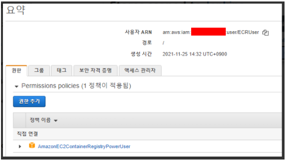 Access Key와 Secret Key는 ECR 관련 권한만 부여하면 된다.