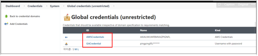 고로 Git 플러그인 혹은 ECR 플러그인 등을 활용할 때 기 설정한 ID 값을 활용하여 인증 및 인가를 수행할 수 있다.