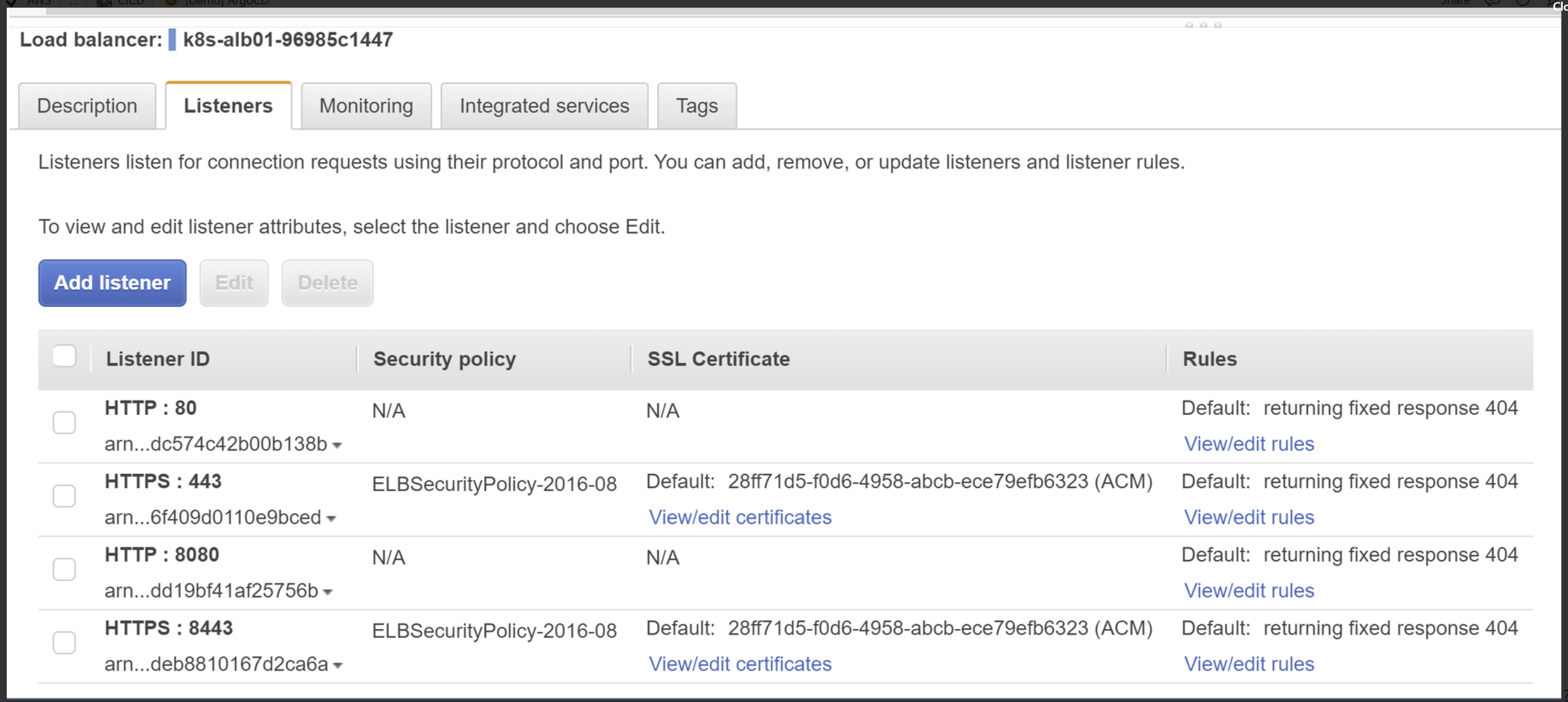 단순 ArgoCD를 위한 ALB를 1개 더 생성한다면 비용적으로 비효율적이다. 고로, 기존에 있는 ALB가 있다면 그루핑을 하여 8443 등의 포트로 접근할 수 있도록 설정해준다.