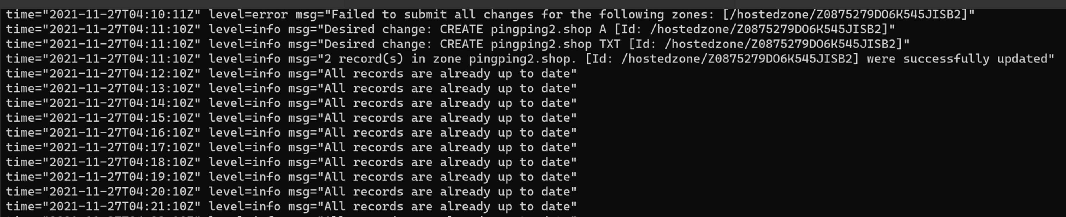 external-dns-cb4cc4bd6-d7cfr 1/1 Running 0 3d19h