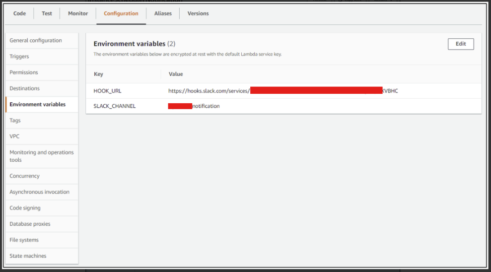 Lambda 소스 코드 내에서 사용하기 위한 환경 변수를 설정해준다.