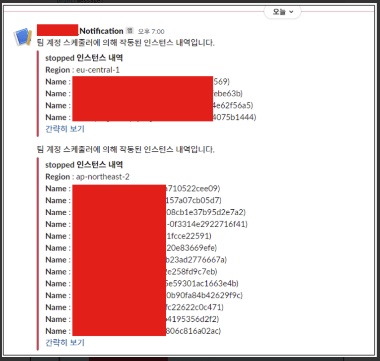 "text": "팀 계정 스케줄러에 의해 작동된 인스턴스 내역입니다."