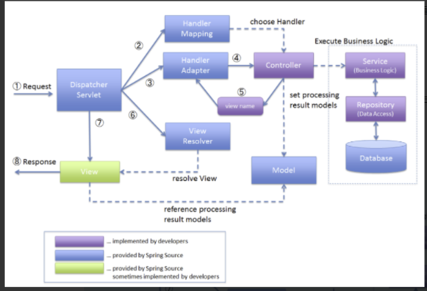 1. 브라우저는 특정 URL에 요청을 보내고, DispatcherServlet은 가장 먼저 요청을 받아들인다.
