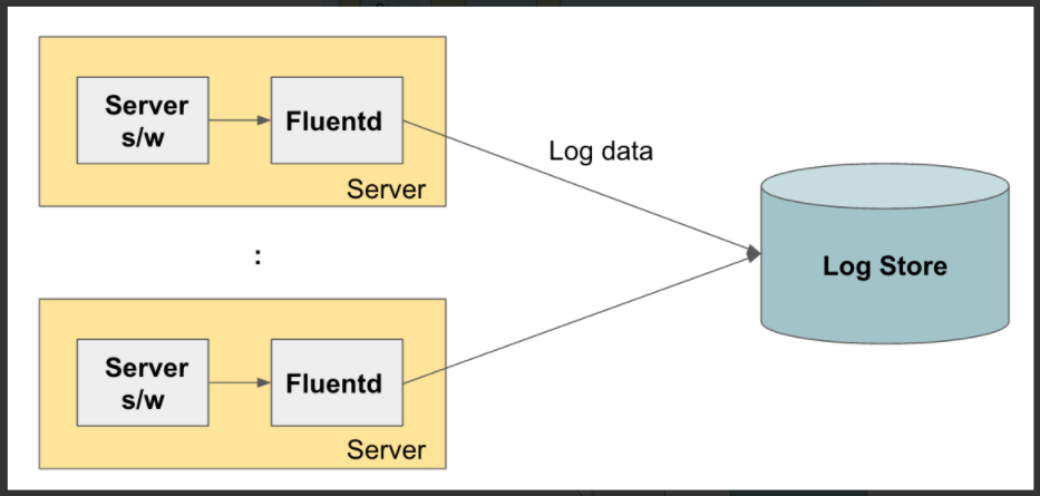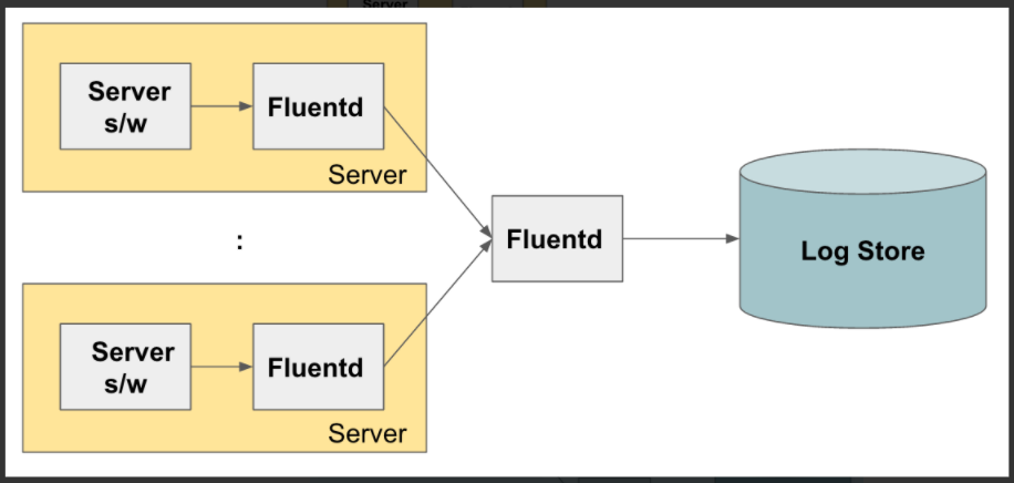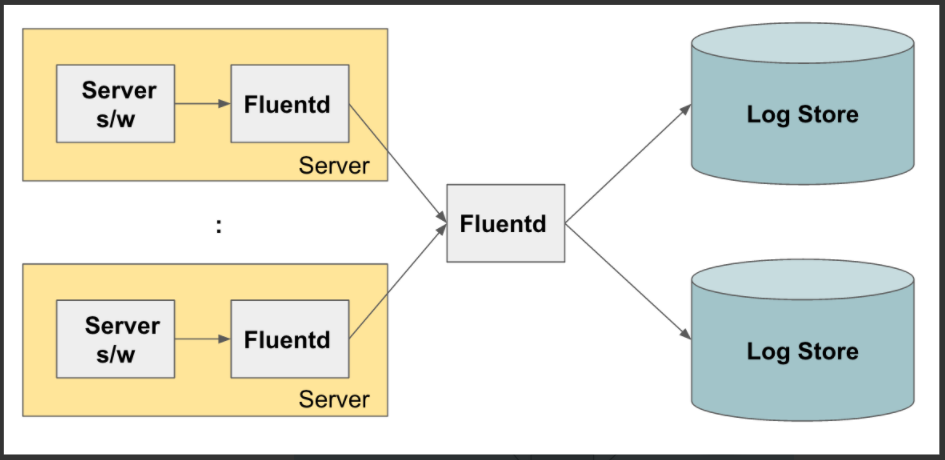 [2] 각 서버에서 Fluentd가 수집한 로그를 다른 Fluentd로 보내서 이 Fluentd가 최종적으로 로그 저장소에 저장