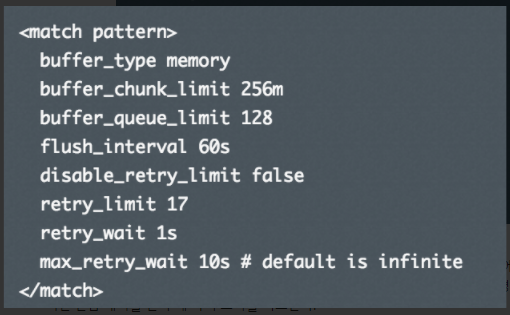 다음 Queue에서는 데이터를 읽어서 로그 저장소에 데이터를 쓰는데, 로그 저장소에 문제가 없다면 바로 로그가 써지겠지만 네트워크 에러나 로그 저장소 에러로 로그를 쓰지 못할 경우에는 retry_wait 시간 만큼 대기를 한 후에 다시 쓰기를 시도한다.