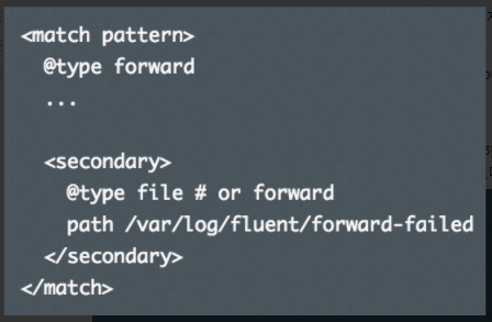 ex) secondary output을 AWS S3로 지정해 놓고, S3로 로그를 일단 저장하게 하고 나중에 mongodb가 복구된 후에, S3에서 다시 mongodb로 로그를 수집하는 방식을 취할 수 있다.