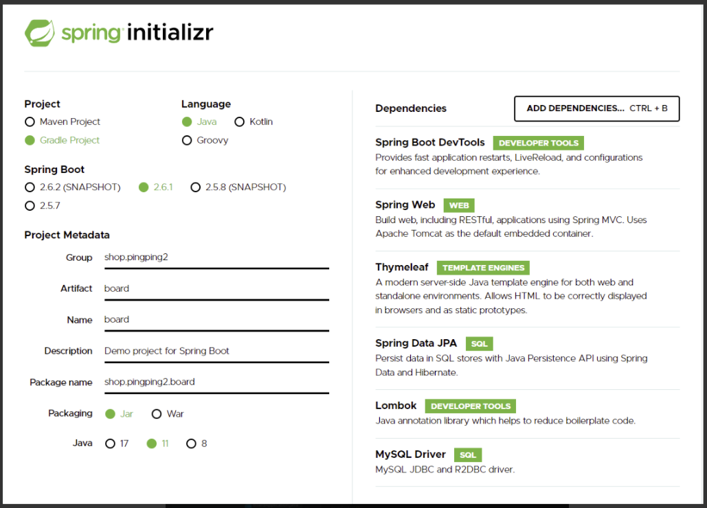 Spring Initializr을 통해 Project를 생성하였다.