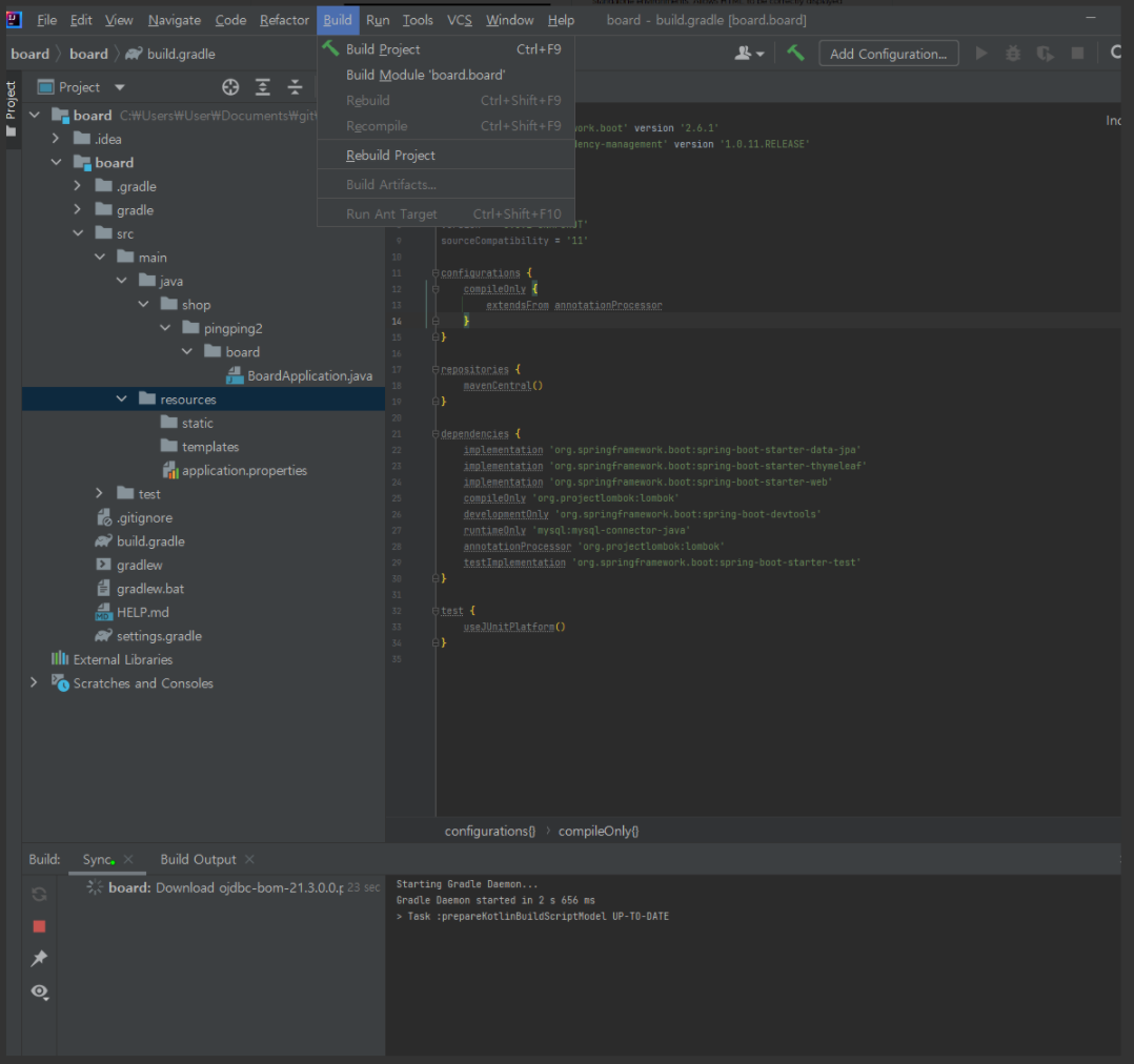 ++ 추후 Google OAuth2 로그인을 위한 Spring Security도 Dependency를 추가 설정해주었다. 해당 부분은 build.gradl의 dependencies에 추가한 뒤 재빌드를 해주면 된다.