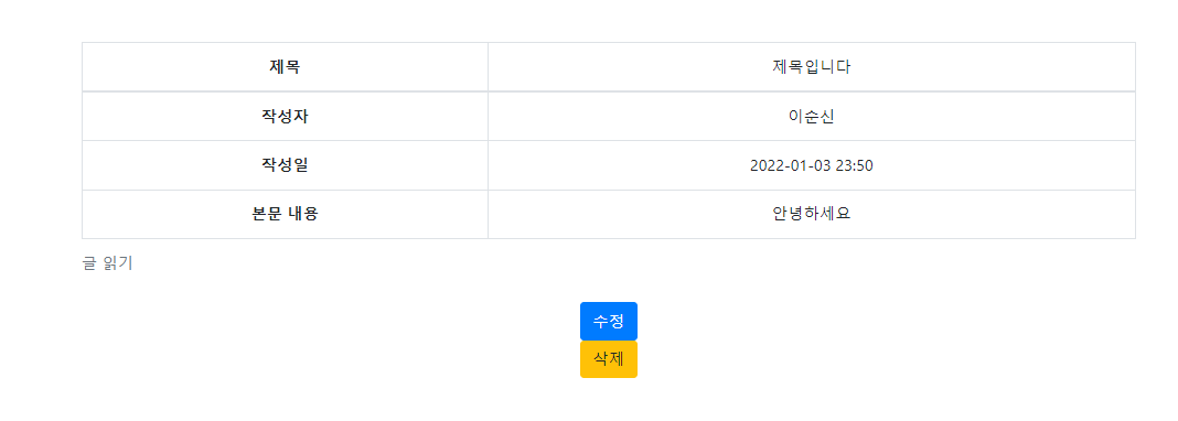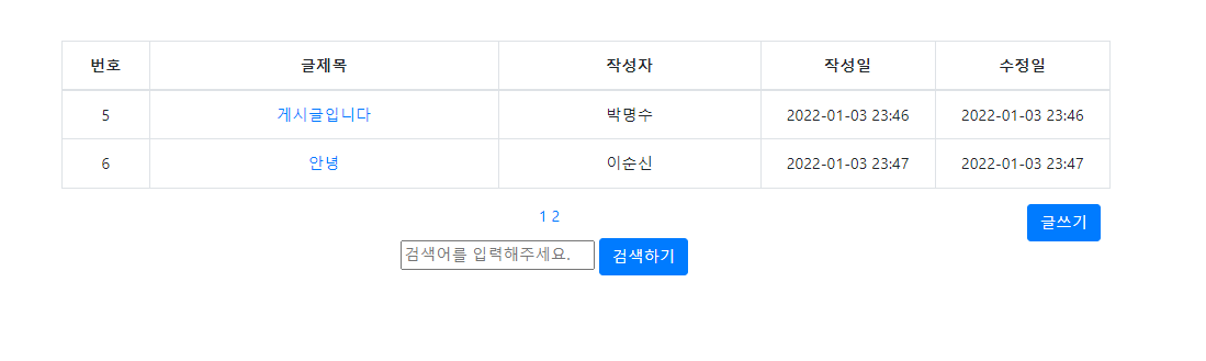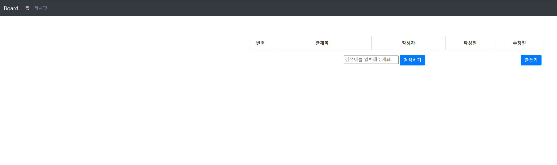 '게시판' 클릭을 하게 되면 '/board/list' HTTP 경로로 접근한 뒤 Controller는 현재 BoardList를 Service를 통해 전달받은 뒤 해당 Data를 for loop을 돌아 thymeleaf 템플릿을 통해 보여줄 것이다.