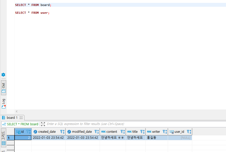 9. DBeaver를 통해 User, Board에 데이터가 인입되는 것을 확인할 수 있다.