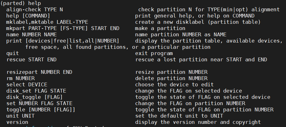 Welcome to GNU Parted! Type 'help' to view a list of commands.