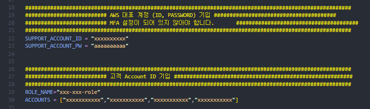 ########################## AWS 대표 계정 (ID, PASSWORD) 기입 #######################################