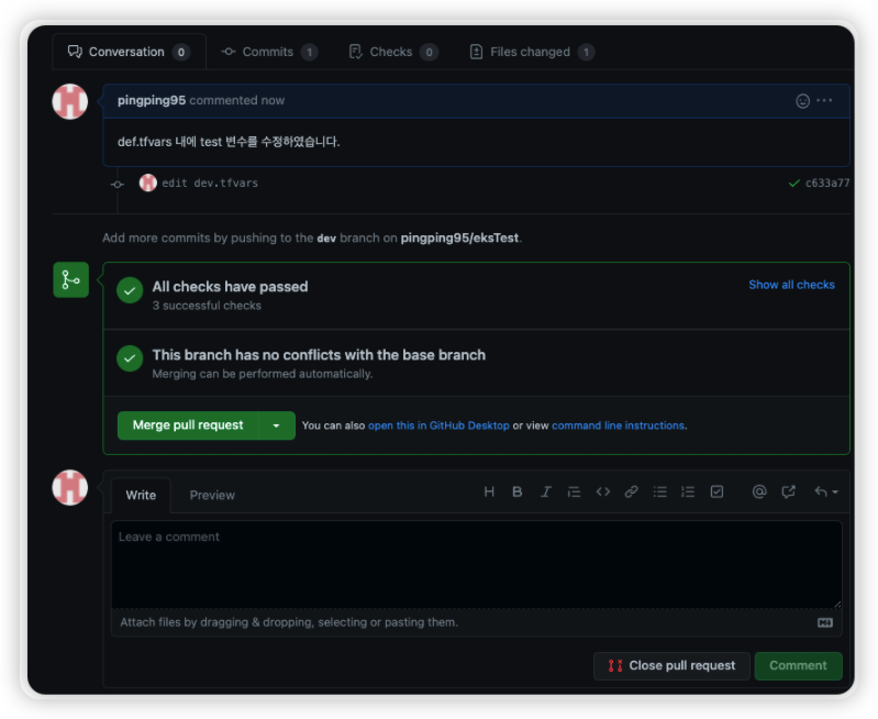 이렇게 Atlantis를 사용하여 Git에서 PR 베이스로 Terraform CI를 수행하는 것을 확인할 수 있었다.