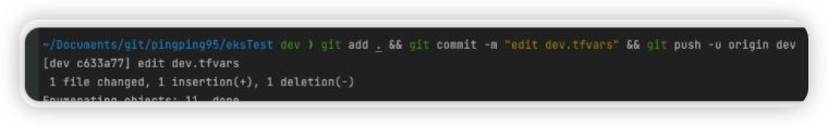 2. 변수를 아래와 같이 수정하여 dev 브랜치에 Push