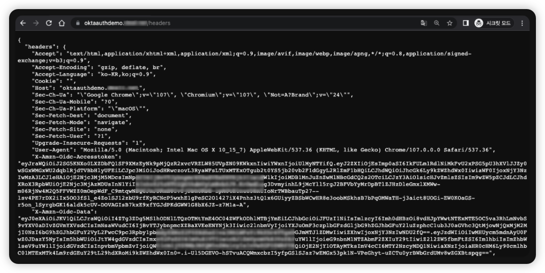 /headers 경로로 접근하면 HTTP Header가 보일텐데 여기서 X-Amzn-Oidc-Accesstoken