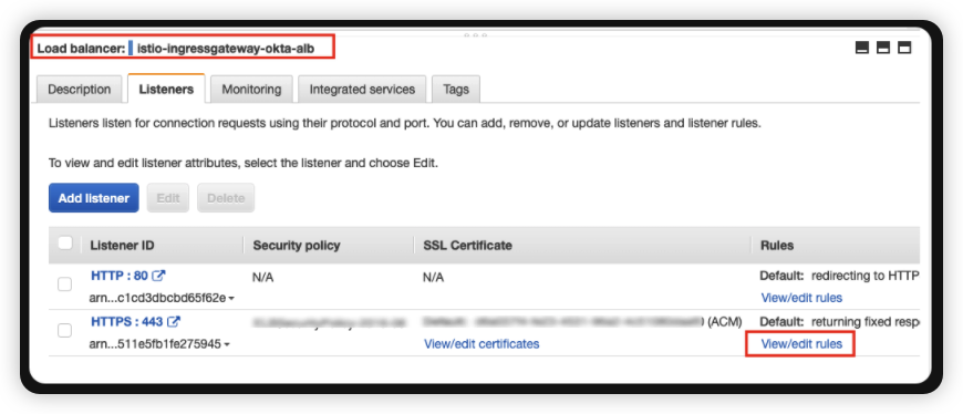 istio: istio-ingressgateway-okta-alb