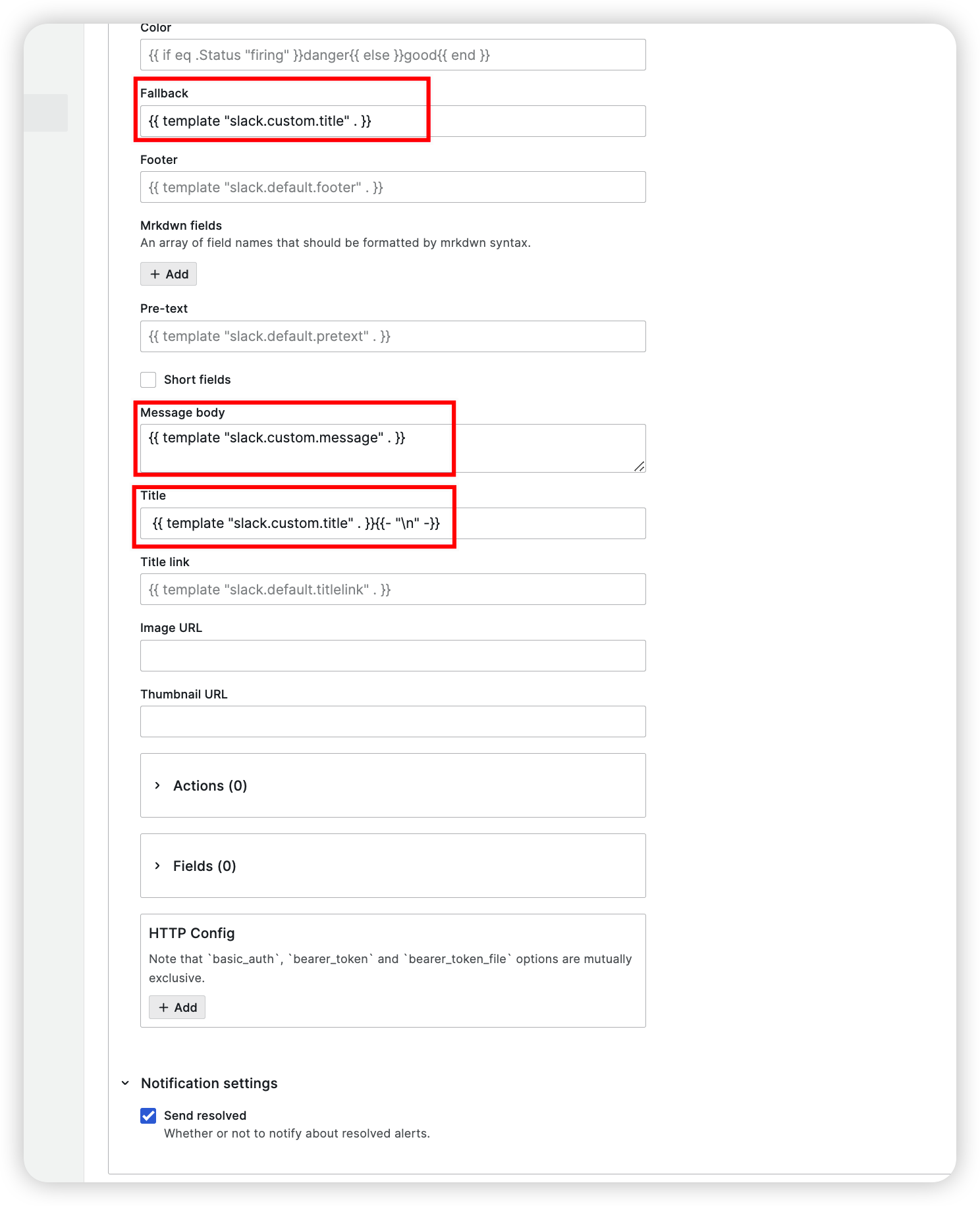 [ title: <tmpl_string> | default = '{{ template "slack.default.title" . }}' ]
