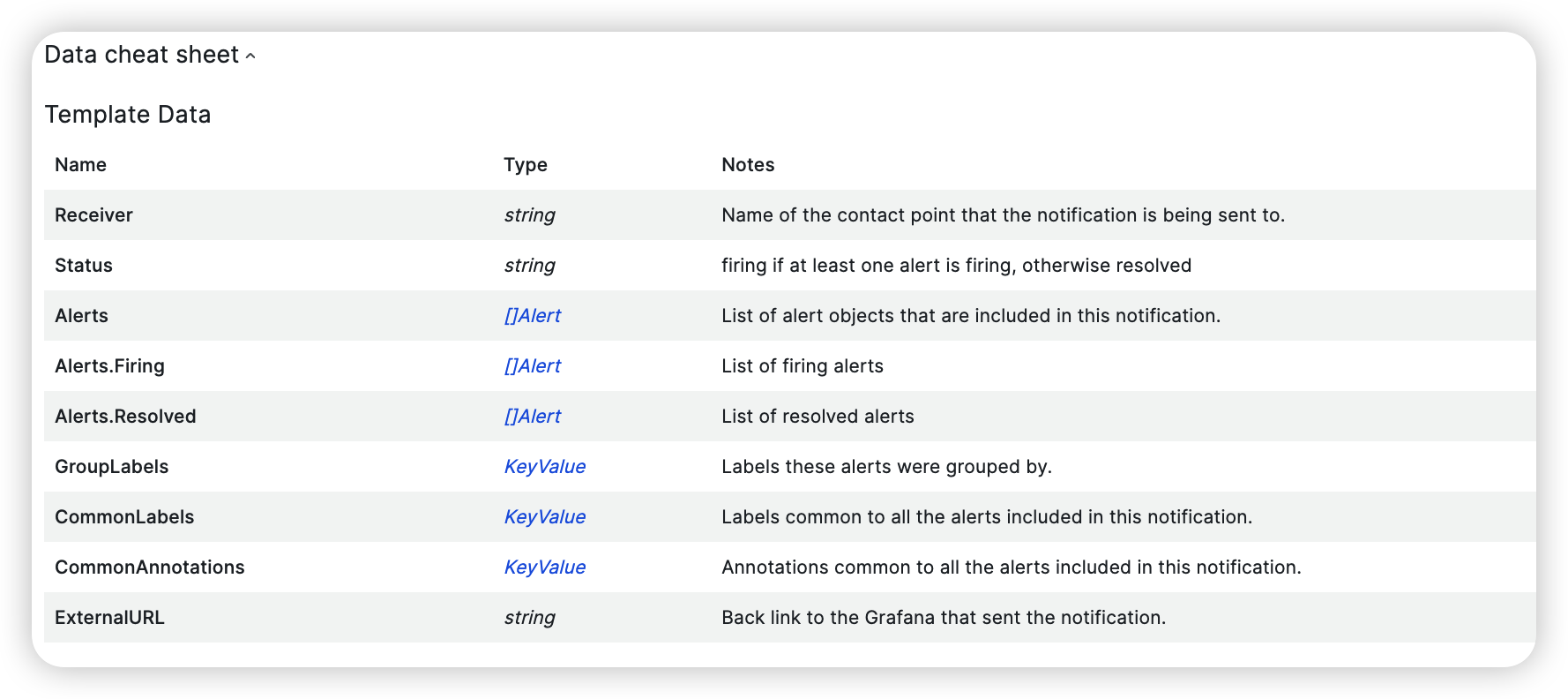 여기서 잘 보면 Alerts.Firing 과 Alerts.Resolved는 Type이 []Alert, 즉 리스트다.