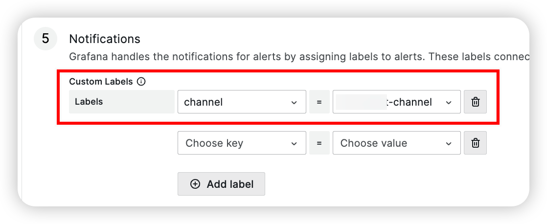 이는 나중에 Notification policies에 의해 어떤 Label일 경우 어떤 Slack Channel로 알람을 보낼 것인지 정의할 수 있다.