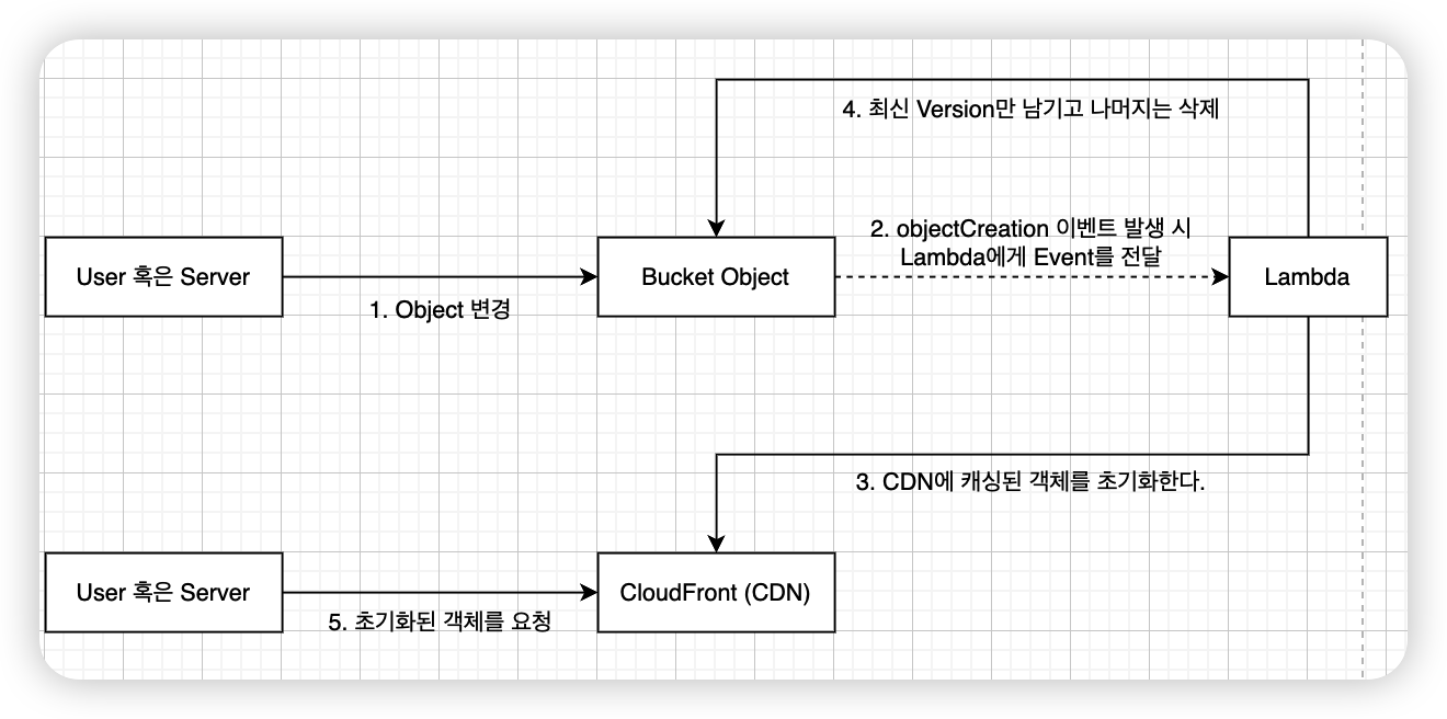 4. Object가 새로 생성되는 이벤트는 무시하며, Object가 변경되는 이벤트일 경우에만 CloudFront Invalidation을 수행한다.