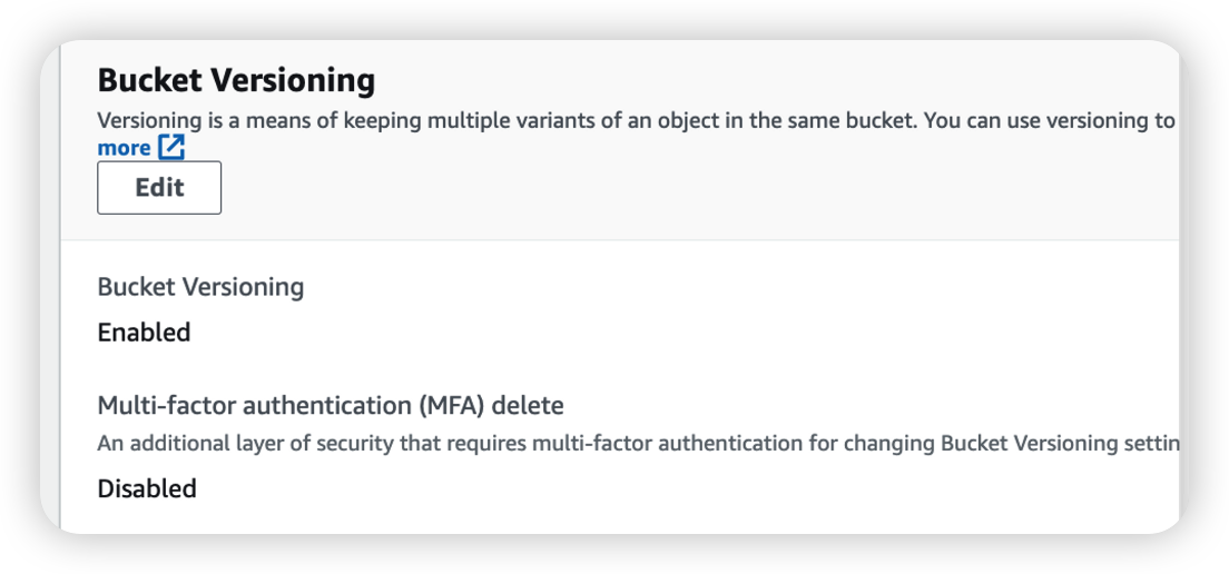 - S3 Bucket에 Versioning(버전 관리)가 되어 있어야 한다.