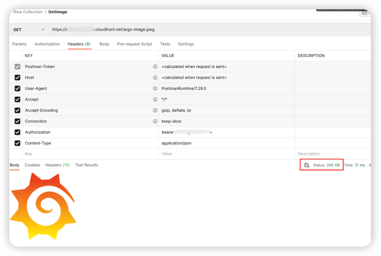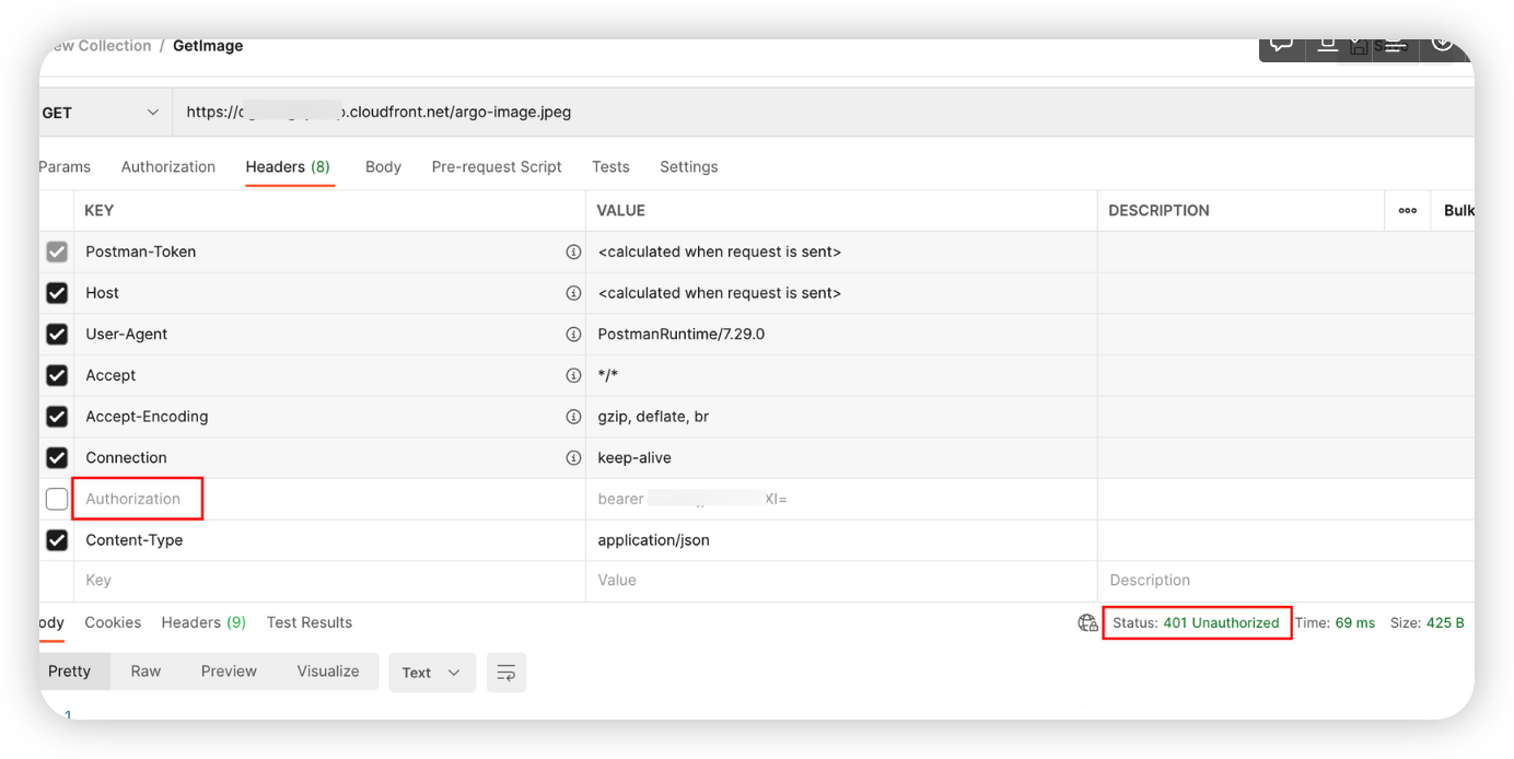 CF에 Image를 다운로드 받을 때 Authorization 헤더를 추가한다.