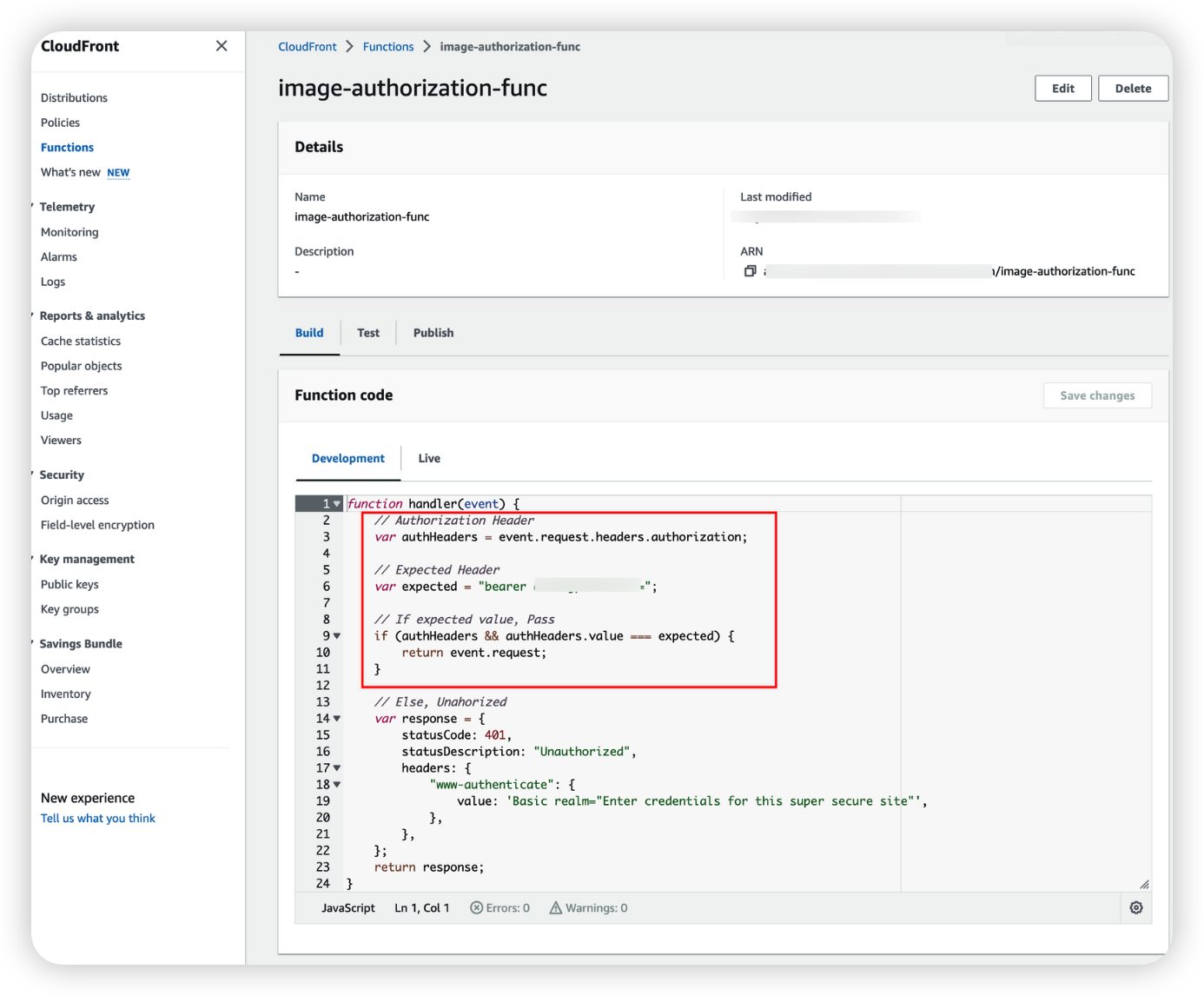 인증을 구현하는 방법은 다양하지만 CloudFront에 Function을 두어 Header를 검사하여 인증을 처리하도록 해보자.