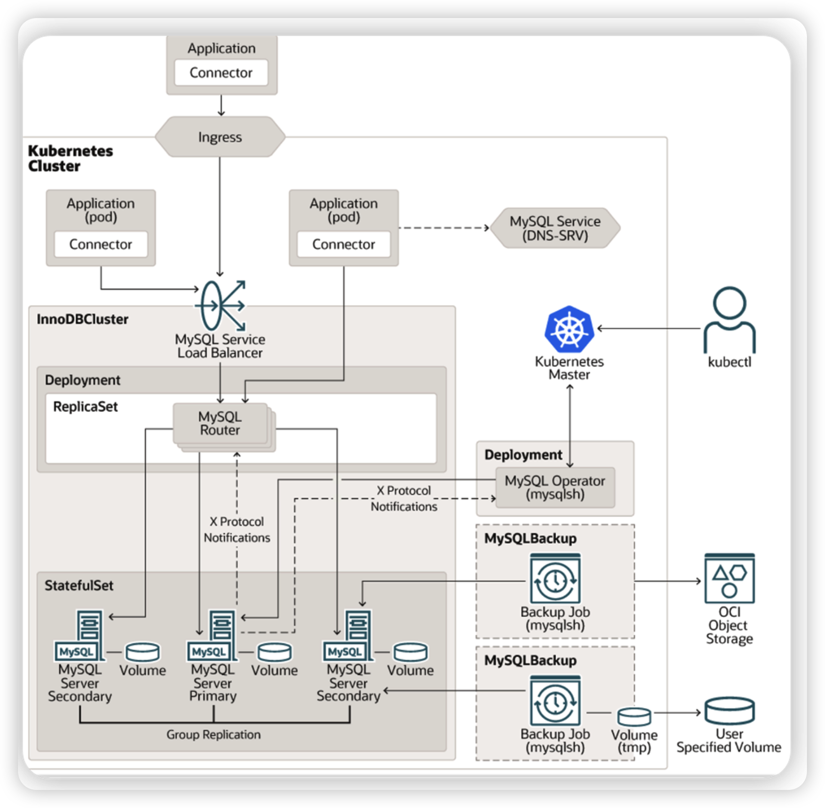 MySQL Operator는 위에서 설명한 InnoDB Cluster를 Kubernetes 상에서 손쉽게 관리하기 위해 만들어진 Operator이며 MySQL 8.0.29 버전부터 정식 GA 되었다.