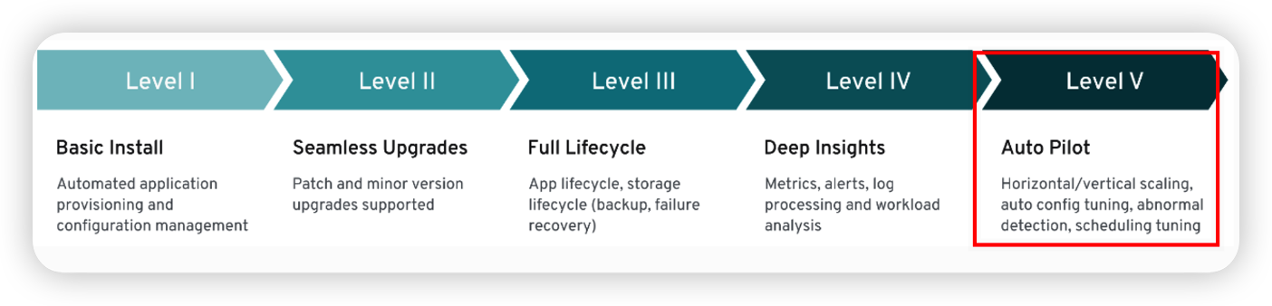 Operator 성숙도 레벨 모델에서 볼 수 있듯이, CloudNativePG는 Level 5이며 이는 제일 높은 성숙도를 자랑한다.