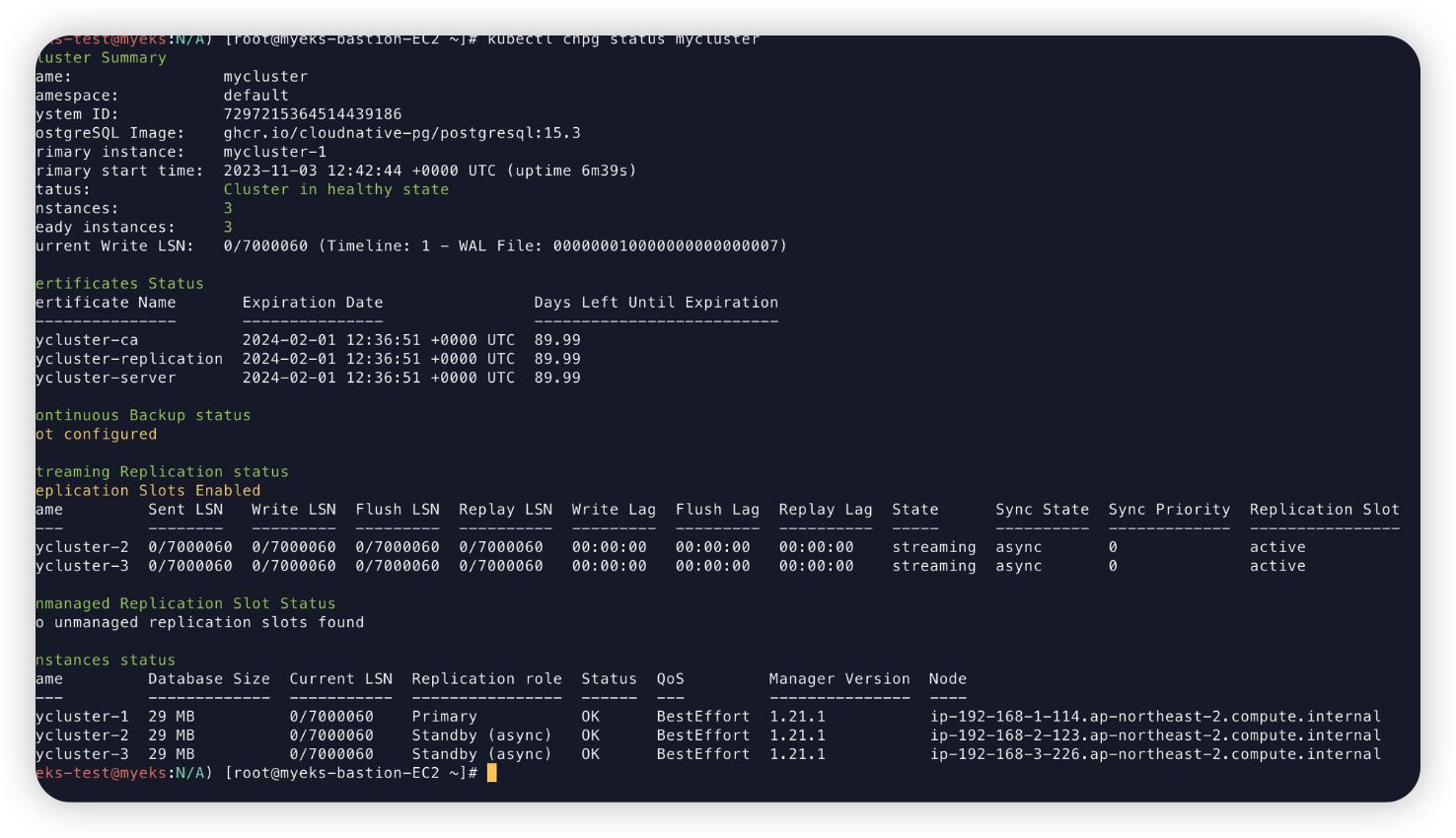 kubectl cnpg status mycluster