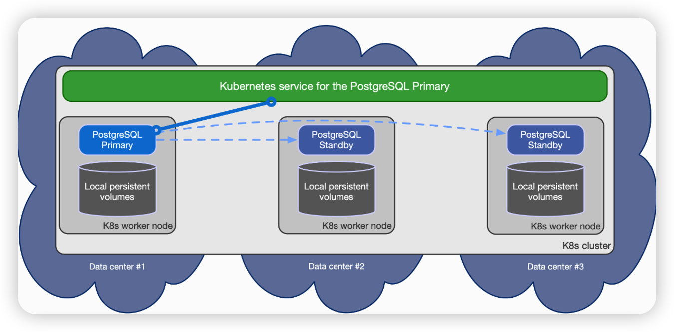 CloudNativePG는 Kubernetes 클러스터 내 여러 상시 대기 복제본을 관리하기 위해 비동기식 / 동기식 스트리밍 복제를 기반으로 하는 클러스터를 지원한다.