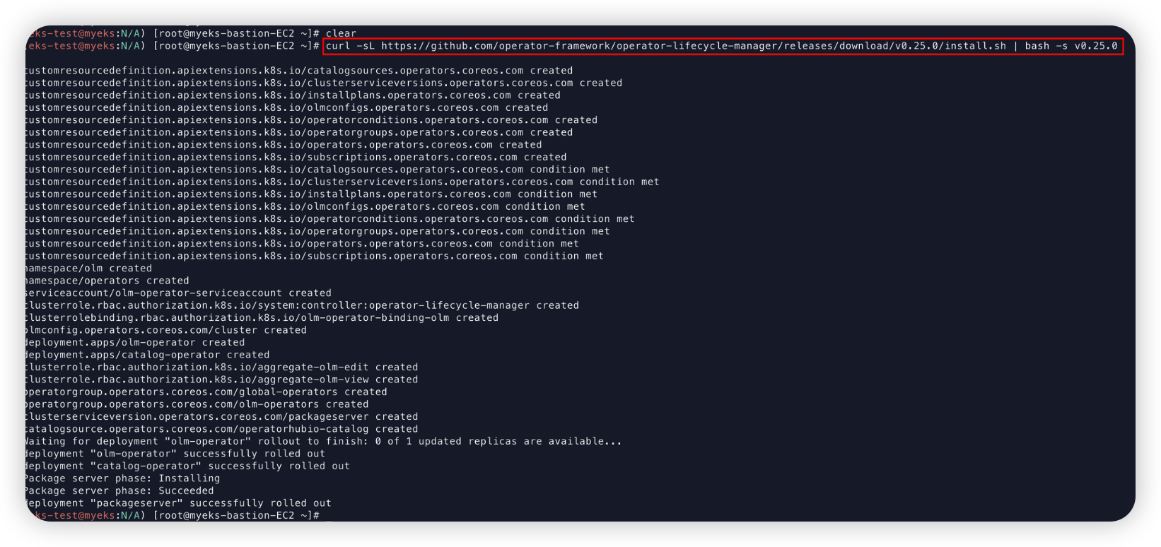 curl -sL <https://github.com/operator-framework/operator-lifecycle-manager/releases/download/v0.25.0/install.sh> | bash -s v0.25.0
