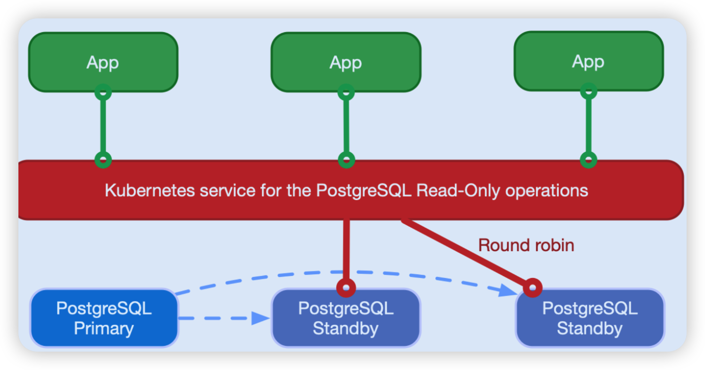 CloudNativePG는 클러스터의 토폴로지가 변경(ex. Primary 인스턴스에 장애가 발생한 경우)되면 자동으로 위의 서비스를 업데이트한다.