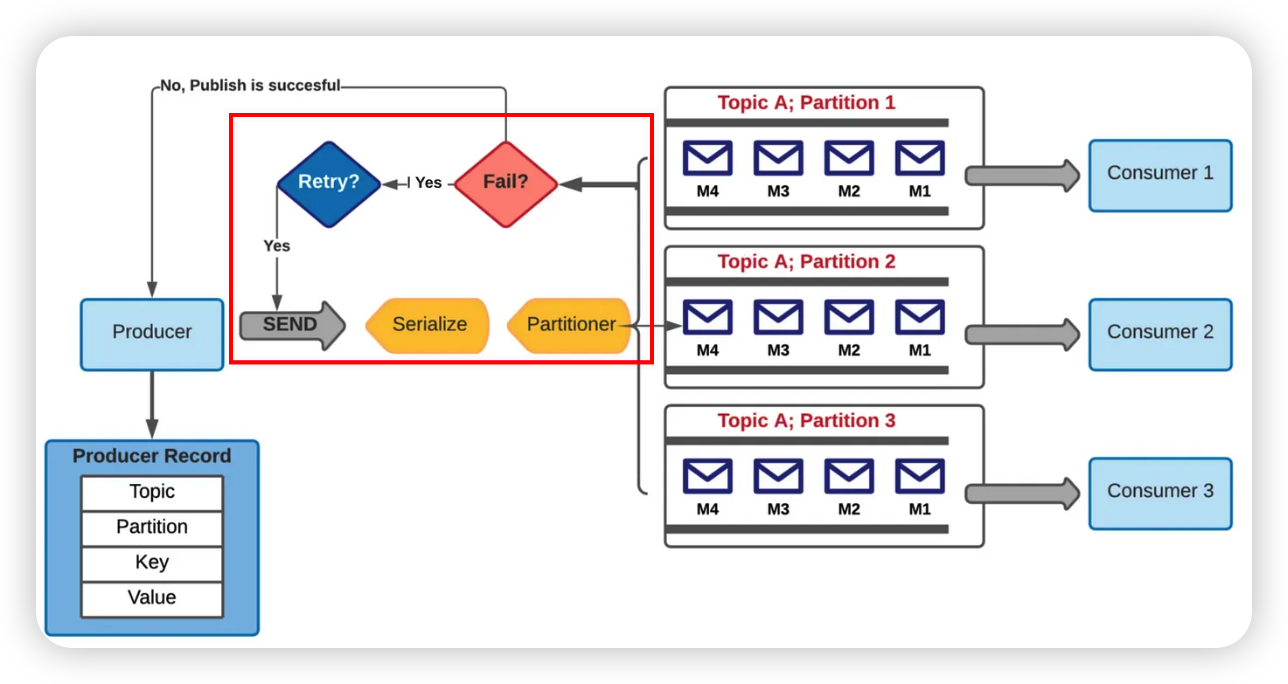 - Producer는 Topic(논리적인 단위) 내 어떤 Partition(물리적인 단위)로 Record로 보낼지 정해야 하는데 이는 다양한 Algorithm에 의해 결정된다.