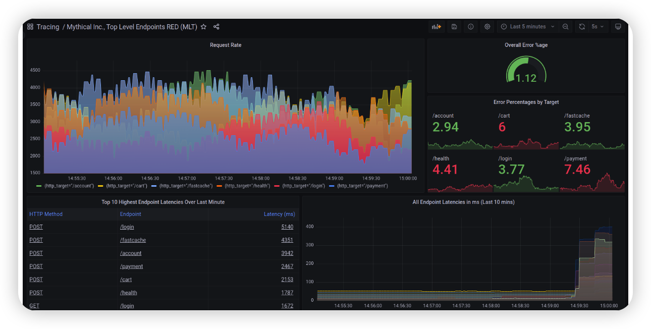 Metrics Generator를 통해 다음 화면처럼 우리가 흔히 볼 수 있는 시각화를 수행할 수 있게 된다.