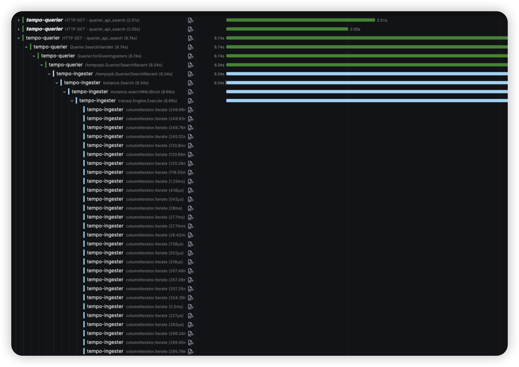 Grafana를 통해 Grafana Tempo의 Trace를 조회할 때 일반적으로 속도가 느릴 수 밖에 없다.