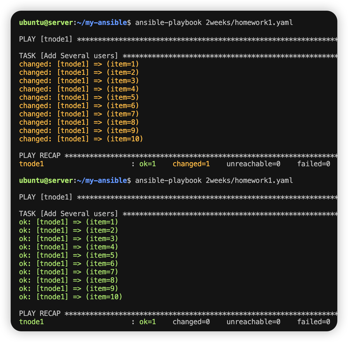반복문이 없다면 Add testuser1 user, Ass testuser2 user 라는 Task를 각각 총 2개 만들어야 한다.