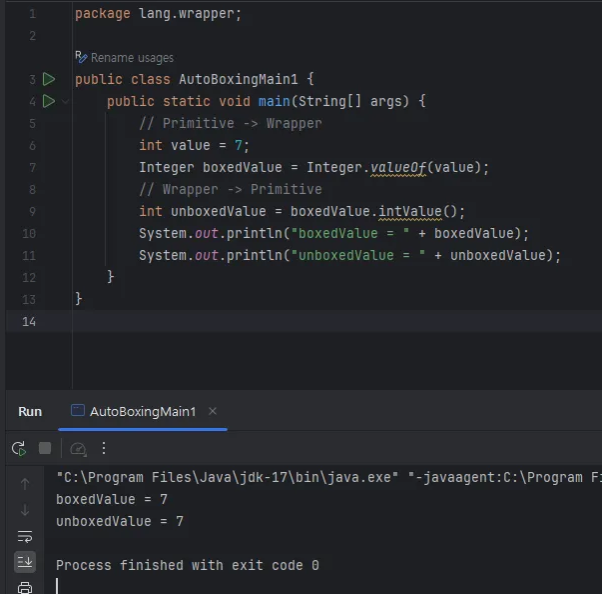 - 기본형을 래퍼 클래스로 변경하는 것은 마치 박스에 물건을 넣는 것 같다고 하여 박싱이라고 함