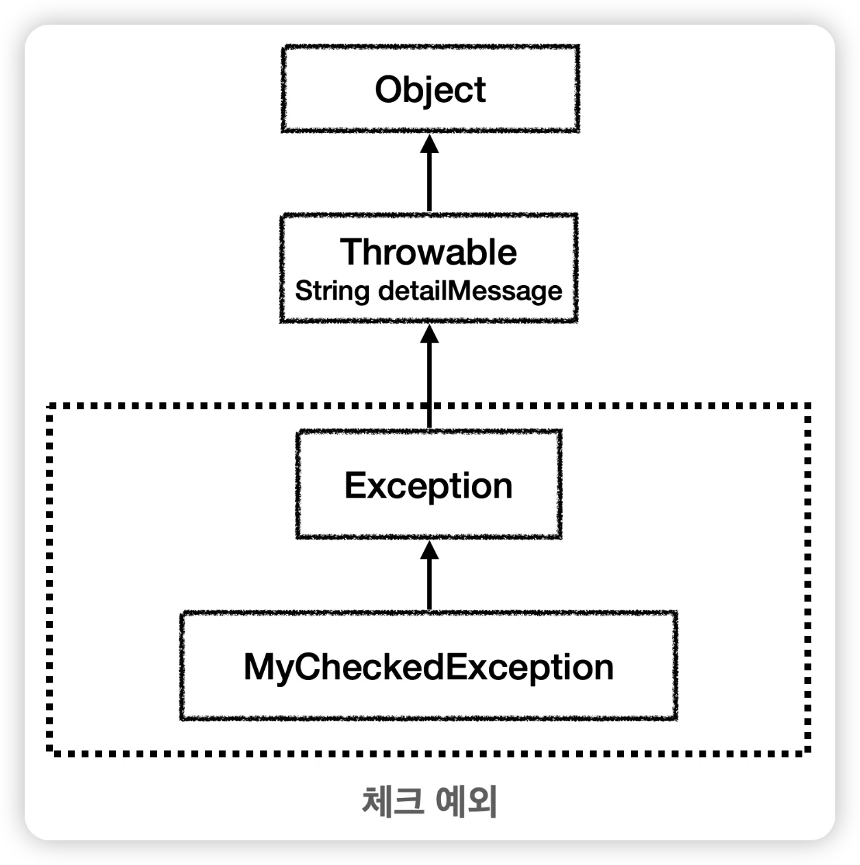 Exception 클래스를 상속받으면 체크 예외가 된다.