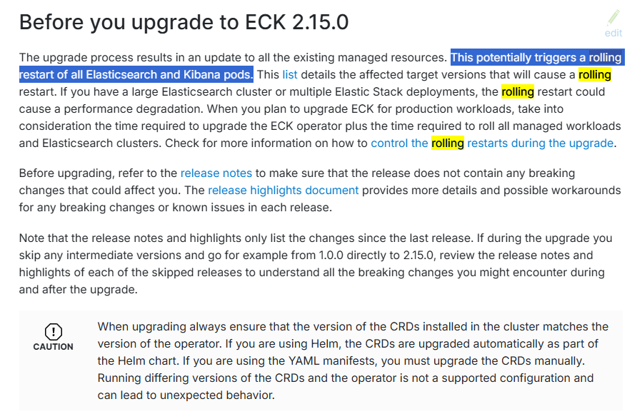 팀원이 Kubernetes 버전 업그레이드를 진행하기 위해 ECK Operator 버전도 그에 맞춰 올렸다.