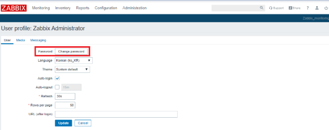 안바꾼다면 default password인 zabbix로 설정되므로 변경해주어야 타인이 침입하기 힘듬
