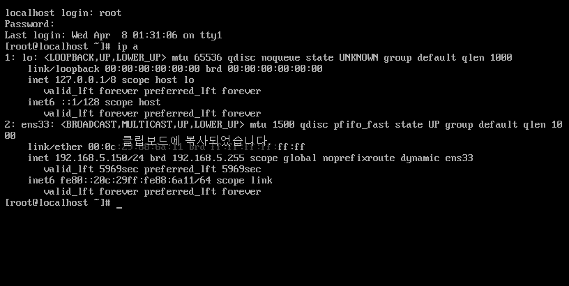 고정 ip 할당을 위해 설정했던 부분 '#' 주석 처리